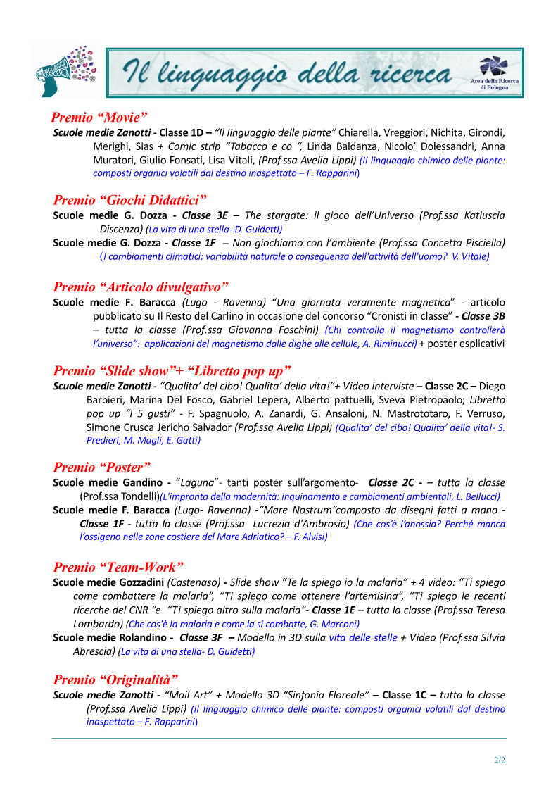 SCUOLA SECONDARIA DI I°GRADO "ROLANDINO DE'PASSAGGERI - Classe 3F Premio “Team-Work”
